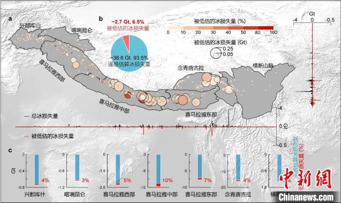 2000~2020年喜馬拉雅水下冰質(zhì)量損失低估量?!≈锌圃呵嗖馗咴?供圖