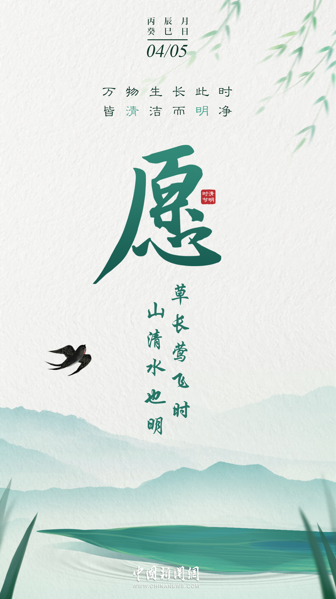萬物生長此時,皆清潔而明凈,故謂之清明。桐花開,虹始見,草長鶯飛時,攜好友二三逐紅花,穿垂柳,紛紛春雨和縷縷清風化盡了路上行人的哀愁事。今日清明,愿萬里氣清景明,你我心清目明。