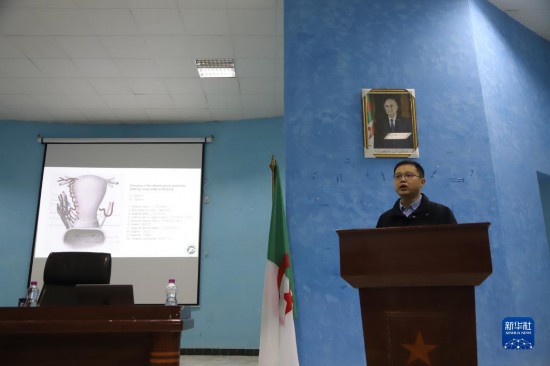 今年以來,援阿醫(yī)療隊塞提夫分隊負(fù)責(zé)人朱濤定期為當(dāng)?shù)刈≡横t(yī)生和醫(yī)學(xué)院學(xué)生舉辦學(xué)術(shù)講座?!爸v座目的是把我掌握的先進理念和技術(shù)傳遞給他們,在‘授人以魚’的同時‘授人以漁’,真正為阿爾及利亞留下一支‘帶不走的醫(yī)療隊’。”