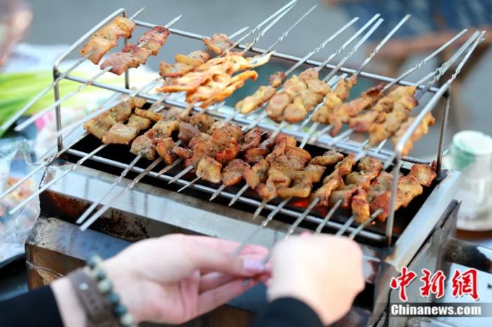 烤羊肉串。何倩楠 攝