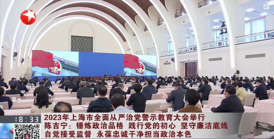 視頻截圖:2023年上海市全面從嚴(yán)治黨警示教育大會