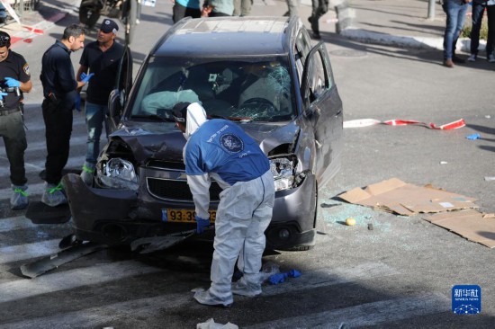 4月24日,警察在耶路撒冷駕車襲擊事件現(xiàn)場(chǎng)工作。新華社發(fā)(穆阿馬爾·阿瓦德 攝)