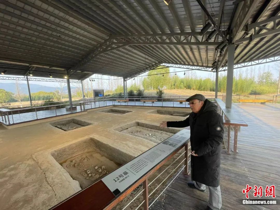 王明達(dá)在良渚遺址公園內(nèi)回憶當(dāng)年的發(fā)掘故事。張煜歡攝