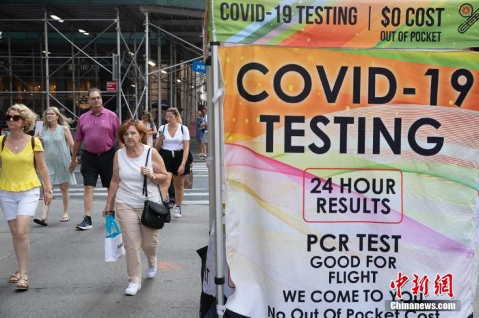 資料圖:民眾在美國(guó)紐約曼哈頓街頭做新冠檢測(cè)。中新社記者 廖攀 攝