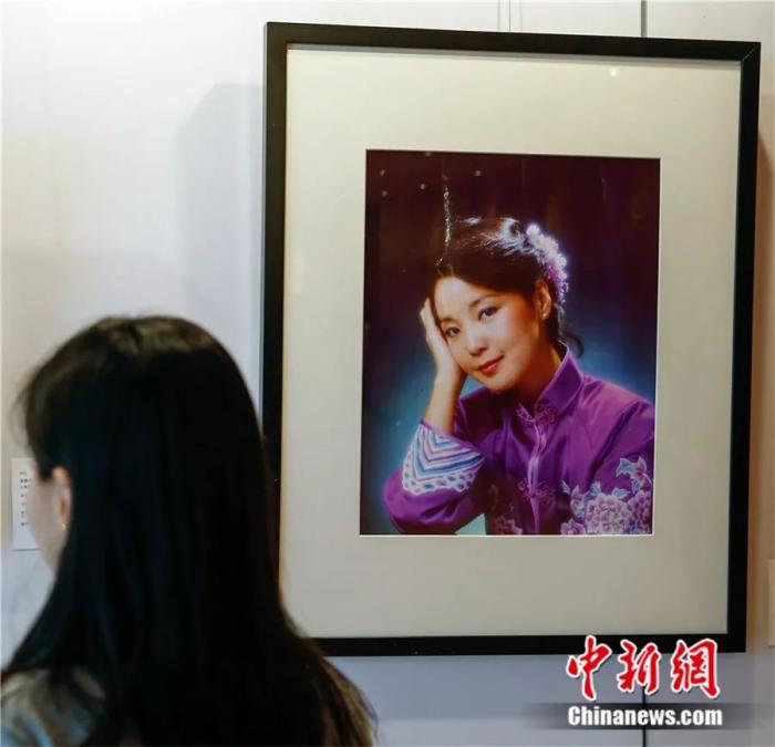 一位女士在北京華辰秋拍預(yù)展現(xiàn)場觀看二十世紀(jì)八十年代拍攝的鄧麗君肖像照。張浩 攝
