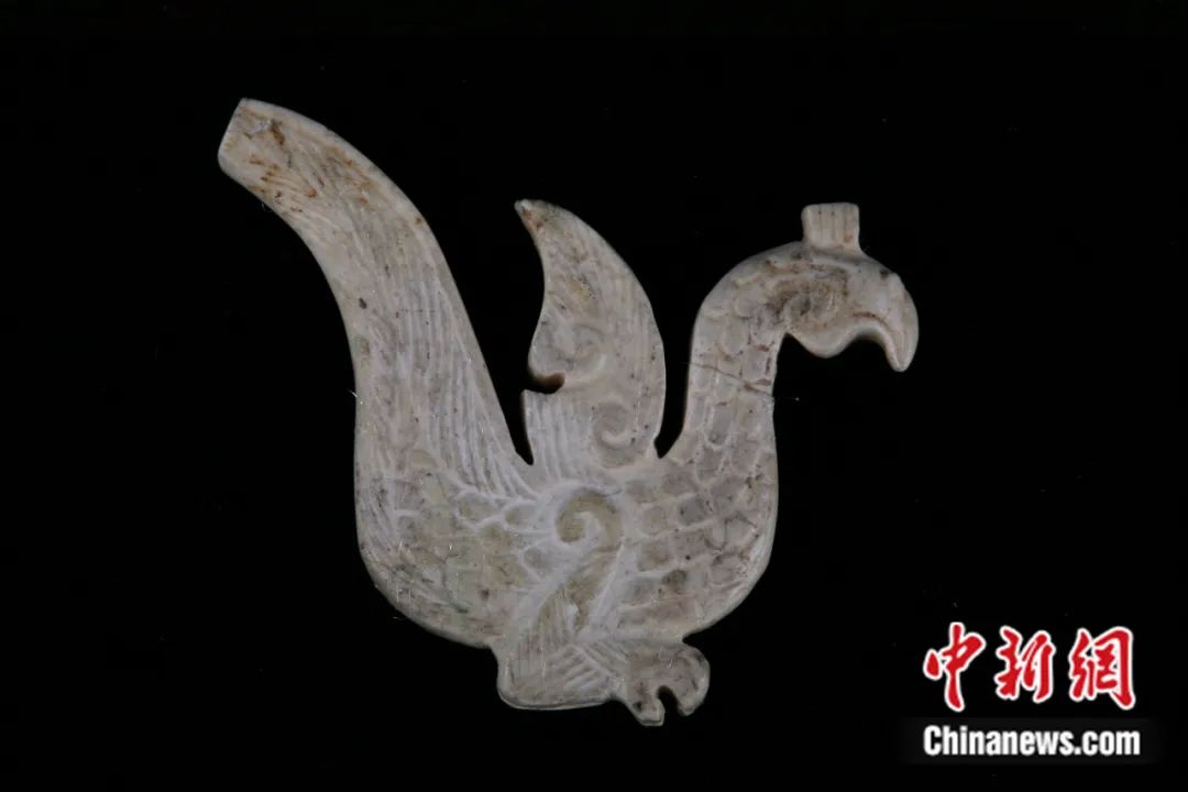 中新社記者:請(qǐng)介紹一下玉飛鳳的出土過程。玉飛鳳的特色、工藝、文化意義及其珍貴之處體現(xiàn)在哪里?