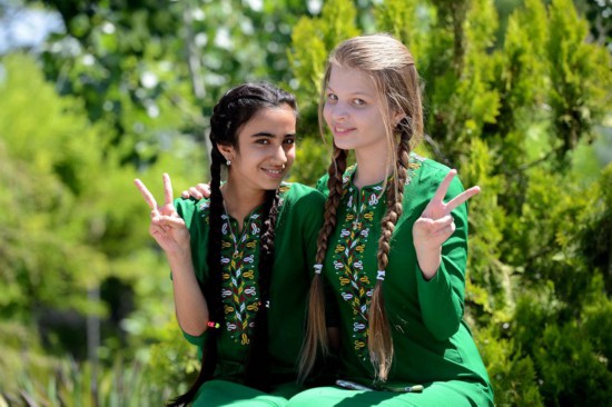 ↑土庫曼斯坦首都阿什哈巴德街頭的當?shù)嘏ⅰ?/p>