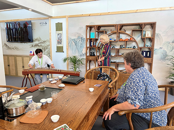 作為南非首個中國茶文化體驗中心,中國傳統(tǒng)茶藝在這一極具特色的非洲旅游文化盛宴上精彩亮相,形成別具一格的文化碰撞。在這古香古色的茶室里,茶香彌漫,琴聲悠揚。美輪美奐的茶具、行云流水的茶藝和典雅的古箏演奏共同構(gòu)成了一幅傳統(tǒng)文化之畫卷。參觀者們在近距離體驗茶藝的同時,還親身感受到了中國茶文化的獨特魅力與韻味。
