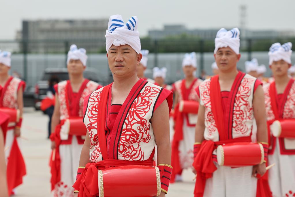 據(jù)悉,表演團(tuán)隊(duì)包括50名陜北腰鼓表演者、48名陜北秧歌表演者、20名現(xiàn)場演奏的樂手和72名手捧鮮花列隊(duì)歡迎的少年兒童。腰鼓和秧歌表演者是來自陜西北部榆林市的民間藝人和群眾文化工作者,少年兒童來自西安市的三所小學(xué)。現(xiàn)場音樂選用了帶有民間音樂元素的《春節(jié)序曲》的一部分。
