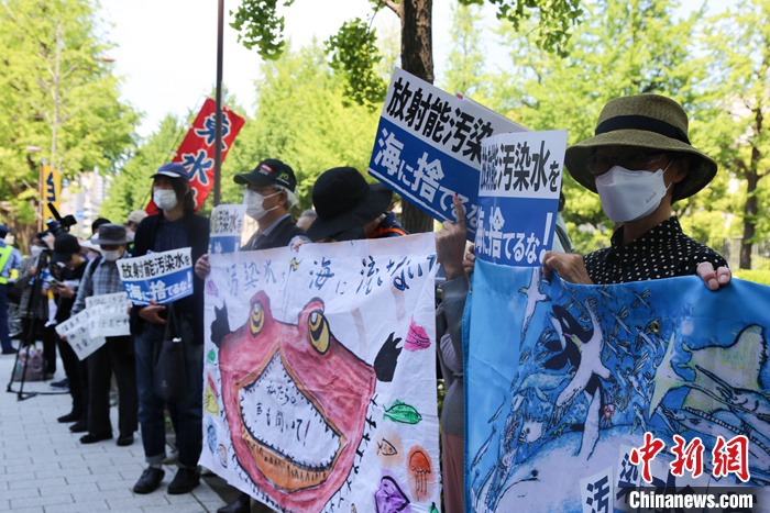 5月16日,日本民眾在東京電力公司總部前舉行集會,表達(dá)對日本政府和東京電力公司持續(xù)強(qiáng)推福島核污染水排海計(jì)劃的強(qiáng)烈反對。 中新社發(fā) 蔣文月 攝