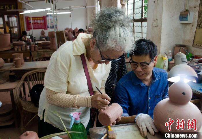 中新社欽州5月17日電 (翟李強(qiáng))“你泥中有我,我泥中有你?!闭趶V西參訪的臺(tái)灣花蓮縣秀林鄉(xiāng)陶樸閣美學(xué)才藝發(fā)展協(xié)會(huì)理事長(zhǎng)連美惠一邊哼著歌,一邊向記者介紹花蓮陶瓷與廣西欽州坭興陶“連親”的故事,她很開(kāi)心再次來(lái)到廣西“再續(xù)前緣”。