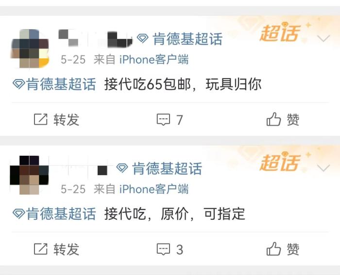 肯德基超話里有很多人在接“代吃”服務(wù)。