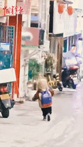 小朋友一路小跑,開(kāi)心極了