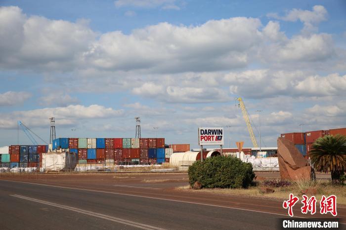 從澳大利亞北領(lǐng)地達(dá)爾文市往東驅(qū)車17公里便抵達(dá)號(hào)稱“通往亞洲的大門”的達(dá)爾文港。穿過用鋼鐵搭建的有中文標(biāo)注著“嵐橋達(dá)爾文港”的大門便是港口貨物作業(yè)區(qū)。