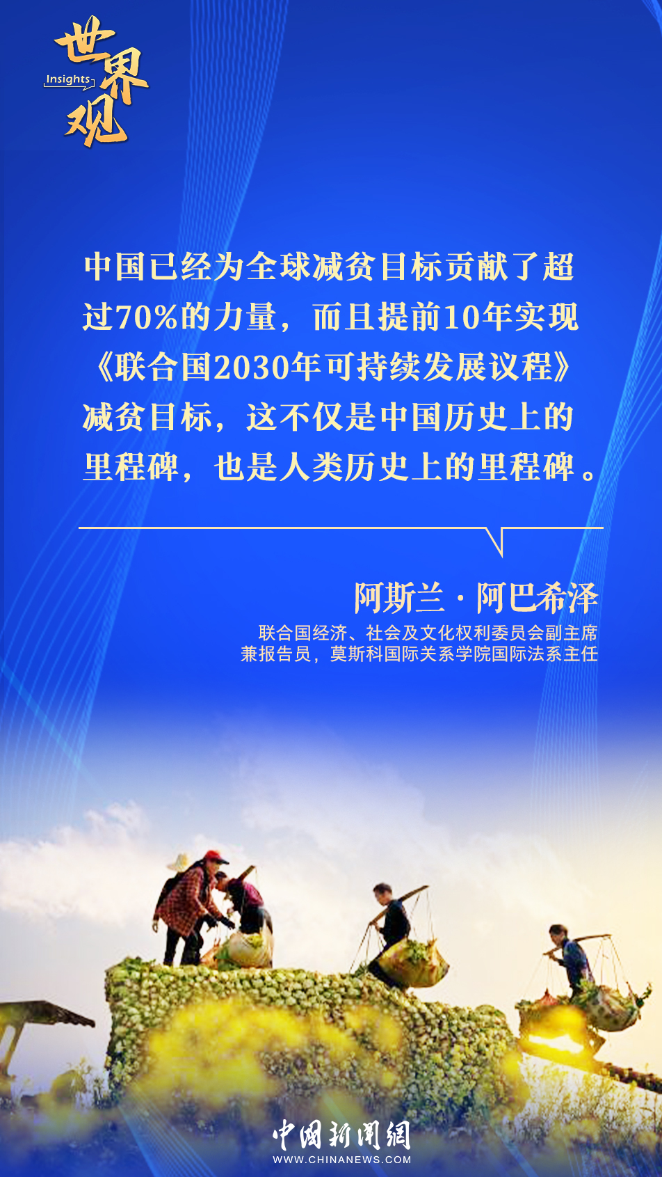 聯(lián)合國經(jīng)濟(jì)、社會及文化權(quán)利委員會副主席兼報告員,莫斯科國際關(guān)系學(xué)院國際法系主任阿斯蘭·阿巴希澤高度評價中國減貧成就,稱其樹立了新的歷史豐碑。