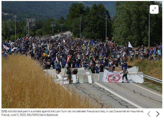 據(jù)報道,當天,大約2000名抗議者聚集在阿爾卑斯山地區(qū)的莫里耶訥河谷,反對當局在當?shù)匦藿ǜ哞F。據(jù)介紹,這條高鐵計劃連接法國里昂和意大利,線路途經(jīng)阿爾卑斯山地區(qū)。