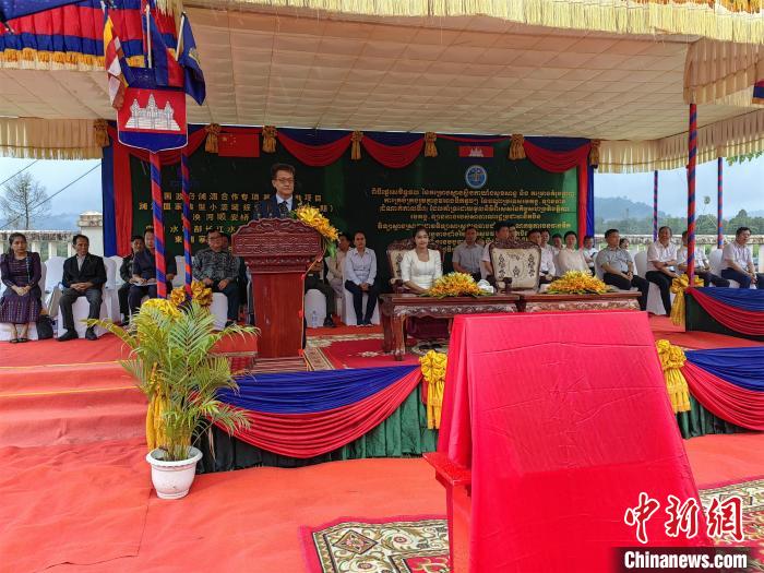 中新社金邊6月19日電 (記者 楊強(qiáng))當(dāng)?shù)貢r(shí)間6月18日,瀾湄合作專項(xiàng)基金“瀾湄國家典型小流域綜合治理示范(三期)”項(xiàng)目俄勒塞村成果移交儀式在柬埔寨國公省莫邦縣舉行。中國駐柬埔寨大使館公使銜參贊趙海燕、柬埔寨國公省省長密杜娜·布通以及當(dāng)?shù)馗鹘缑癖?00余人出席。