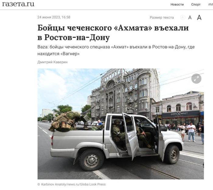 中新網(wǎng)6月24日電 據(jù)俄羅斯《報紙報》援引社交媒體消息,當(dāng)?shù)貢r間24日,俄羅斯車臣“阿赫馬特”特種部隊已進(jìn)入頓河畔羅斯托夫地區(qū)。當(dāng)日早間,俄雇傭兵組織“瓦格納”集團進(jìn)入該地。