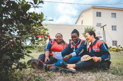 中國(guó)師父陳玲(右)是非洲之星鐵路運(yùn)營(yíng)公司工電部電子設(shè)備檢修工區(qū)工長(zhǎng)。在肯尼亞工作4年來(lái),她見(jiàn)證了女學(xué)員們電務(wù)技術(shù)的成長(zhǎng)?!艾F(xiàn)在她們都能獨(dú)當(dāng)一面?!标惲嵴f(shuō)。朱迪思(左)是陳玲的學(xué)員之一,她從師父那里獲得的不僅是技術(shù),工作間隙對(duì)飲食、文化等多維度的交流同樣讓她受益匪淺?!拔覀冎g是師徒,更是姐妹。”朱迪思說(shuō)。圖為陳玲在休息時(shí)教學(xué)員唱中文歌曲。