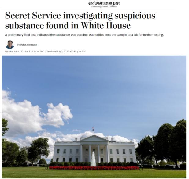 中新網(wǎng)7月4日電 據(jù)美國《華盛頓郵報》4日報道,當?shù)貢r間2日晚,美國特勤局在白宮內(nèi)發(fā)現(xiàn)了一些可疑白色粉末狀物質(zhì),經(jīng)初步鑒定,其中含有可卡因成分。