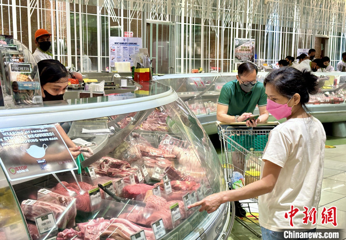 圖為菲律賓大馬尼拉地區(qū)馬卡蒂市,市民在超市選購豬肉。 中新社記者 張興龍 攝