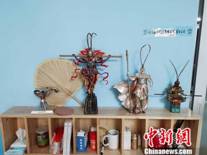 蔡磊的辦公室里有很多孫悟空的雕塑擺件,他說自己希望從孫悟空的抗?fàn)幘窭锛橙∧芰俊?記者 張尼 攝