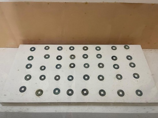張騫出使西域?qū)κ澜缥拿鞯陌l(fā)展產(chǎn)生了深遠影響,這是陳列在張騫紀念館內(nèi)的古絲綢之路上商旅使用的古錢幣。新華社記者 葉昊鳴 攝