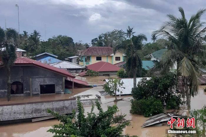 臺風“杜蘇芮”于當?shù)貢r間7月26日相繼在菲律賓卡加延省富加島和達盧皮里島登陸,帶來強降雨。圖為當?shù)貢r間7月27日,菲律賓卡加延河谷大區(qū)卡加延省阿布盧鎮(zhèn),洪水已淹至部分民房房頂。中新社發(fā) 菲律賓卡加延省信息辦公室供圖
