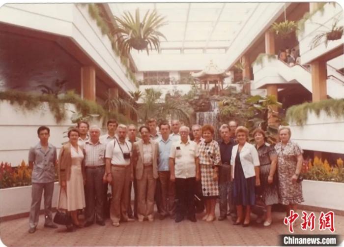 1983年10月,應中國人民對外友好協(xié)會和中蘇友好協(xié)會邀請,時任蘇中友好協(xié)會主席謝爾蓋·列昂尼多維奇·齊赫文斯基率代表團前往中國。圖為代表團成員在廣州白天鵝賓館合影。圖片來源:庫利科娃個人搜集的檔案資料