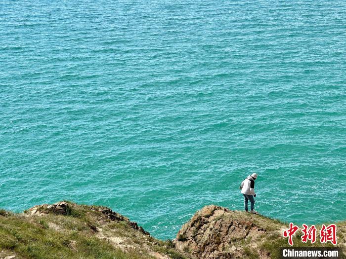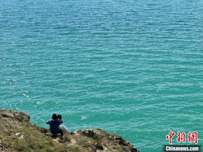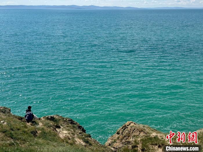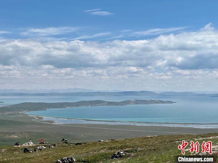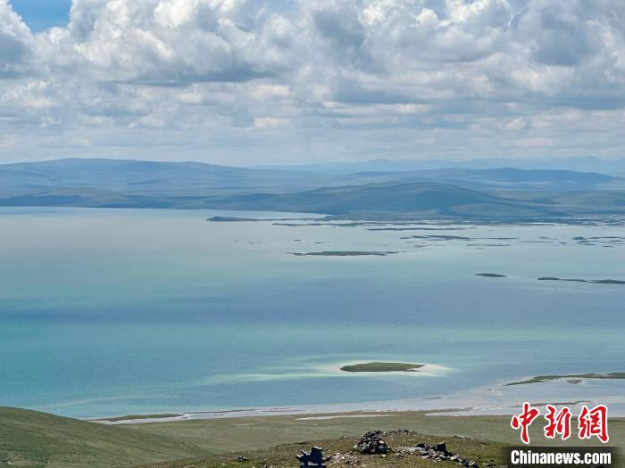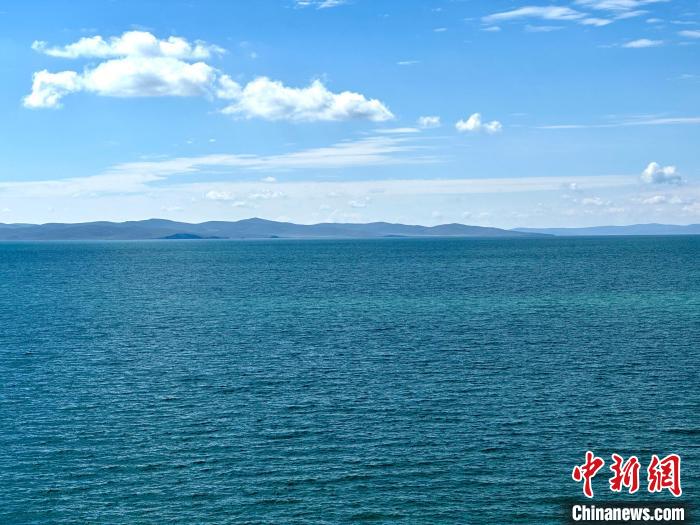 8月1日,記者拍攝到湛藍的鄂陵湖宛如藍寶石鑲嵌在群山之中,煙波浩渺、波瀾壯闊。