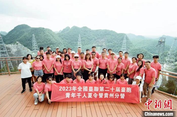 臺(tái)灣青年在貴州平塘參觀“中國天眼”并合影留念。邱軼柯 攝