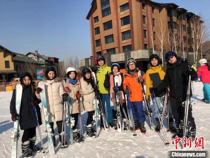 許迪(右三)與臺(tái)灣青年在東北體驗(yàn)滑雪。受訪者 供圖