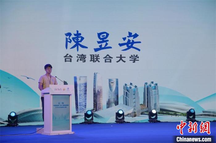 6日晚,來自臺灣聯(lián)合大學(xué)的學(xué)生陳昱安作為臺灣學(xué)生代表發(fā)言。主辦方供圖
