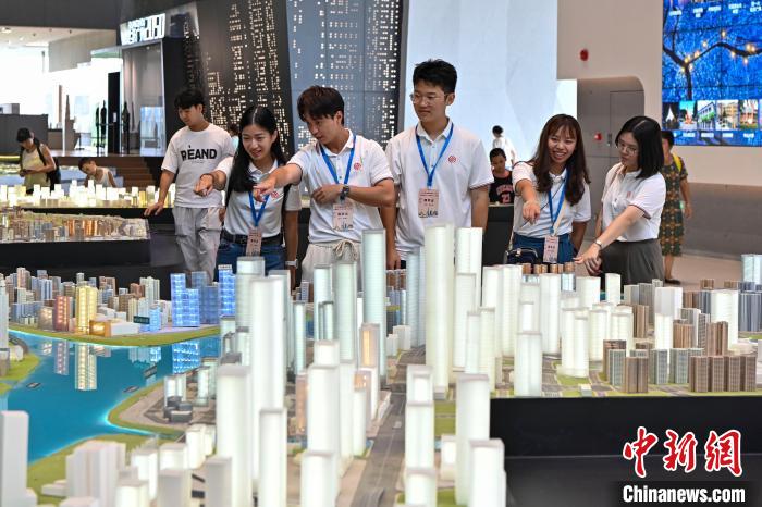 8月8日,2023年全國臺(tái)聯(lián)第二十屆臺(tái)胞青年千人夏令營廣東分營在廣州開營。圖臺(tái)灣青年學(xué)生在廣州市城市規(guī)劃展覽中心內(nèi)參觀。中新社記者 陳驥旻 攝