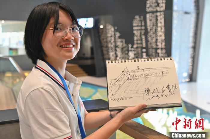 8月8日,2023年全國臺(tái)聯(lián)第二十屆臺(tái)胞青年千人夏令營廣東分營在廣州開營。圖為一名臺(tái)灣青年學(xué)生展示自己素描的廣州陳家祠。中新社記者 陳驥旻 攝