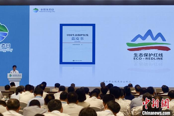8月15日,首個全國生態(tài)日主場活動在浙江湖州舉行,中國國家發(fā)改委、中國自然資源部等部門發(fā)布碳達(dá)峰碳中和重大宣示三周年重要成果、《中國生態(tài)保護紅線藍(lán)皮書(2023年)》等多方面的成果成效。圖為《中國生態(tài)保護紅線藍(lán)皮書(2023年)》發(fā)布。 中新社記者 錢晨菲 攝