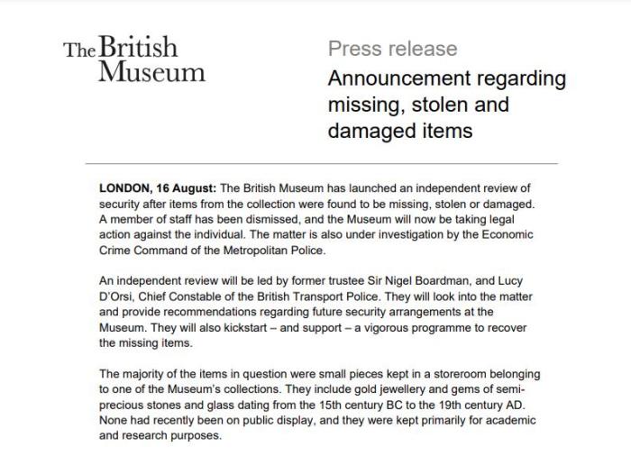 奧斯本稱,“對于所有熱愛大英博物館的人來說,這是悲傷的一天,但我們決心糾正錯誤,并利用這次經(jīng)驗來建設(shè)一個更強大的博物館。”