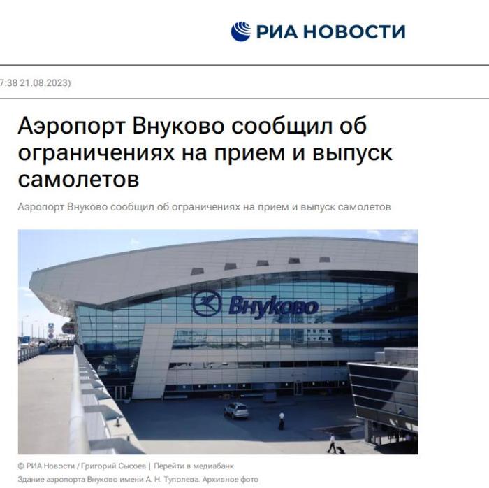 中新網(wǎng)8月21日電 據(jù)俄新社報道,當?shù)貢r間21日,俄羅斯首都莫斯科的伏努科沃機場表示,出于機場無法控制的原因,暫時限制航班在該機場起降。