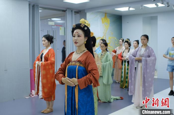 指導(dǎo)老師勞遠(yuǎn)霞認(rèn)為,漢服秀是對(duì)于華夏傳統(tǒng)禮儀的集中呈現(xiàn)?!拔覀儠?huì)參考唐代彩陶俑、古書(shū)畫和戲曲小說(shuō)進(jìn)行動(dòng)作指導(dǎo),通過(guò)選手們的展示,讓這些頗具美感的古代傳統(tǒng)禮儀真正‘走入’現(xiàn)實(shí)中?!眲谶h(yuǎn)霞說(shuō)。