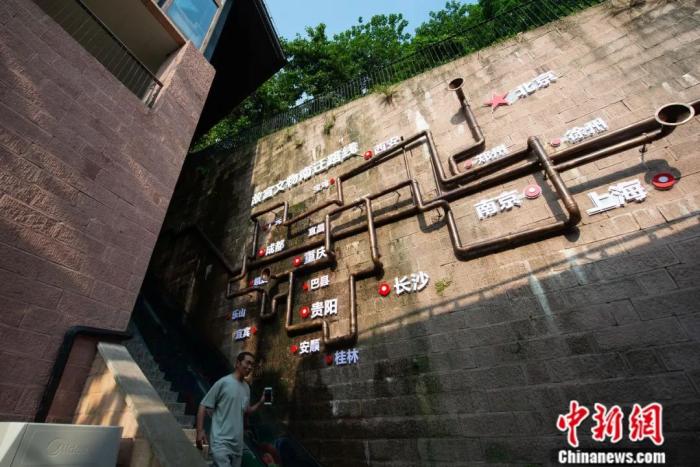 重慶故宮文物南遷紀(jì)念館內(nèi)一處外墻展示的故宮文物南遷路線。何蓬磊 攝