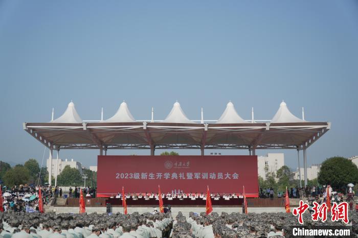 圖為重慶大學(xué)2023級(jí)本科生開學(xué)典禮暨軍訓(xùn)動(dòng)員大會(huì)現(xiàn)場(chǎng)。中新網(wǎng)記者周毅攝