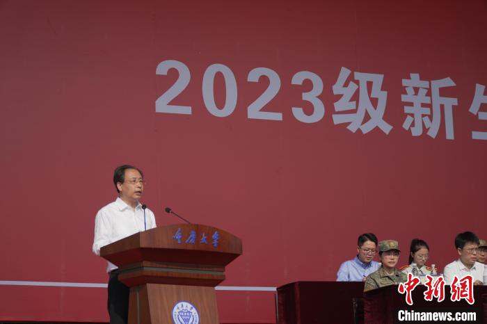 中新網(wǎng)重慶9月3日電 (記者 鐘旖)重慶大學(xué)2023級(jí)本科生開學(xué)典禮暨軍訓(xùn)動(dòng)員大會(huì)3日在校內(nèi)舉行。重慶大學(xué)校長(zhǎng)、中國工程院院士王樹新為來自五湖四海的新生帶來“開學(xué)第一課”。