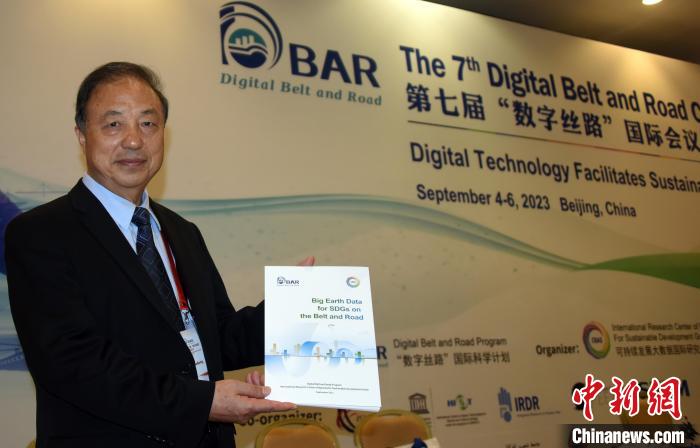 9月4日,第七屆“數字絲路”國際會議在北京開幕,DBAR主席郭華東院士展示當天最新發(fā)布的《地球大數據助力“一帶一路”可持續(xù)發(fā)展》報告。中新網記者 孫自法 攝