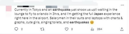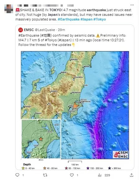 還有網友表示東京有震感,“現在在東京,剛剛的地震把我們嚇壞了!”