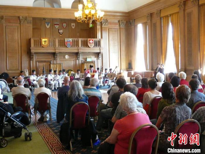 2008年9月25日,上海城隍廟道教樂(lè)團(tuán)在英國(guó)利茲市政廳演出現(xiàn)場(chǎng)。 (上海市道教協(xié)會(huì)供圖)
