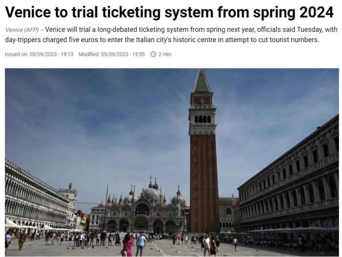 據(jù)報(bào)道,當(dāng)天,威尼斯市議會(huì)行政官員宣布同意購(gòu)票入城制試運(yùn)行30天,且試運(yùn)行日期會(huì)分散在2024年春夏的法定節(jié)假日和周末。