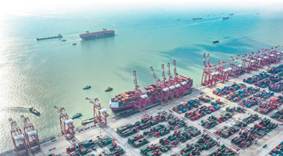 6月8日,繁忙的廣州南沙港集裝箱碼頭。