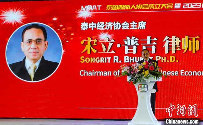 9月9日下午,泰中經(jīng)濟(jì)協(xié)會(huì)主席宋立·普吉在泰國(guó)媒體人協(xié)會(huì)成立大會(huì)上致辭?! ±钣趁?攝
