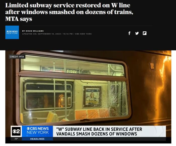 報(bào)道稱,紐約地鐵此前也遭遇過(guò)此類破壞,2020年,在兩個(gè)月時(shí)間內(nèi),紐約地鐵7號(hào)線列車約有100扇車窗遭到破壞。