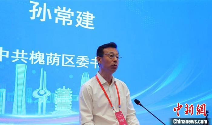 圖為槐蔭區(qū)委書記孫常建在開幕式濟南會場上發(fā)表致辭。濟南市槐蔭區(qū) 供圖